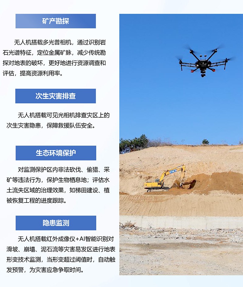 充分发挥无人机飞得高、看得远、查的清的特点,实现全自动化、智能化管理与保护,使国土资源管理从“被动管理”到“主动监测”的转变解决传统管理的痛点。